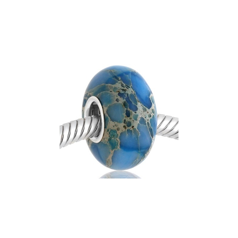 Precioso abalorio para pulsera Niagarra de piedra natural de color azul con nucleo de plata de ley.